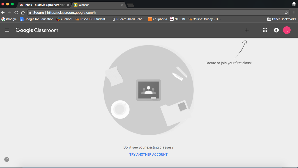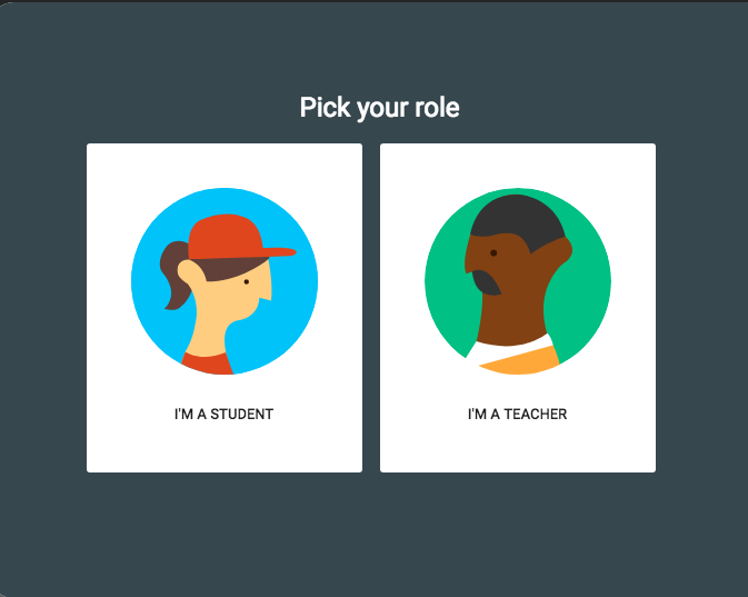 - Classroom will ask if you are a teacher or student. Choose teacher, this will allow you to create and join classes.