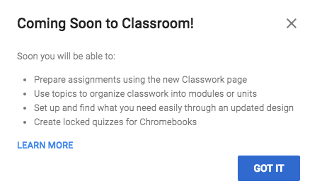 This has been my first year using Google Classroom. I’m a Moodle user for years and years. As always, there are some pros and cons to each, but I truly am a Classroom convert.