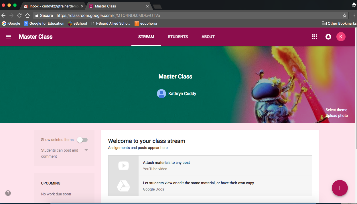 - Stream – this is where you will see everything you have posted, where you will post, upcoming due dates, and a list of topics you have created.